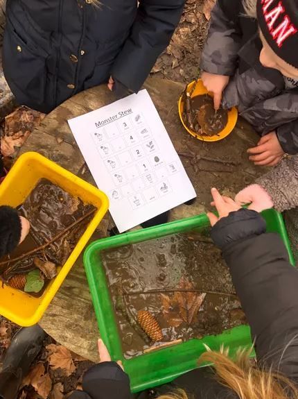 We have been reading the story 'The Colour Monster'. He sent us a letter telling us about his favourite food, Monster stew. We read the recipe together then headed outside to make the stew. We followed the recipe and found the items around the school playgrund and in forest school and counted them into our tubs. We mixed it all up and left the stew for the monster to enjoy. We hope he likes it !